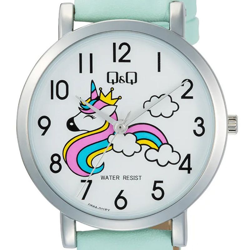Детски часовник Q&Q Q58A-011PY с Кожена каишка/верижка и Кварцов механизъм