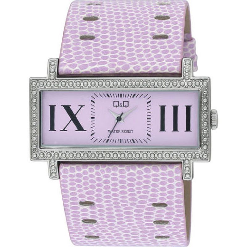 Дамски часовник Q&Q KV30-308Y с кожена каишка/верижка и Кварцов механизъм