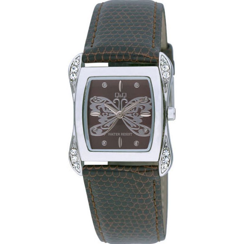 Дамски часовник Q&Q KV11-312Y с кожена каишка/верижка и Кварцов механизъм