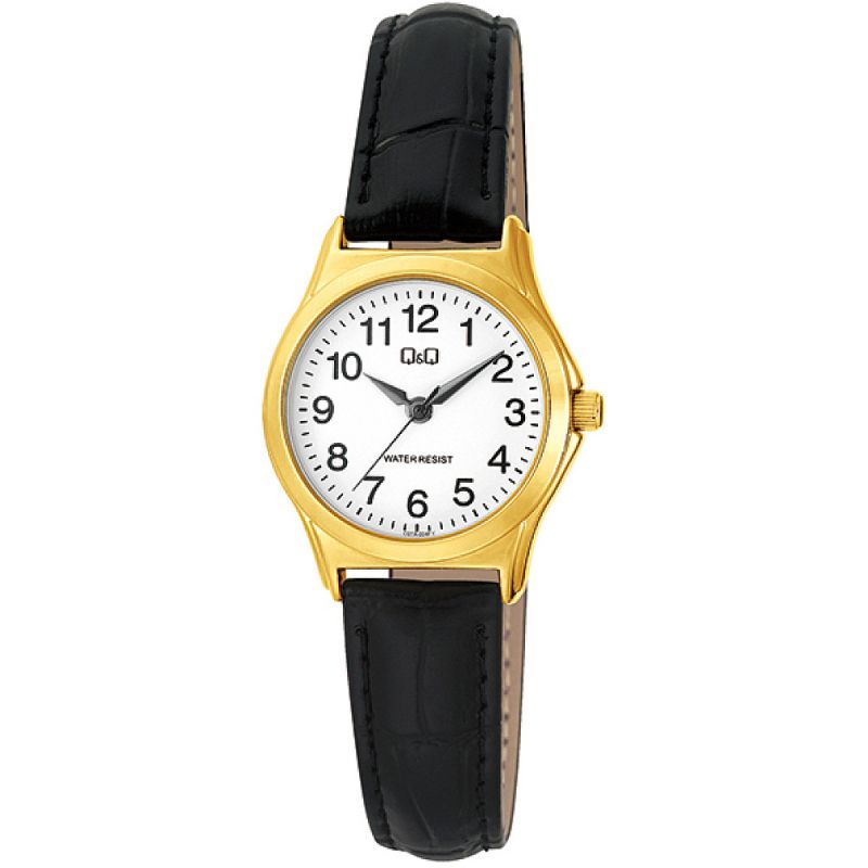 Дамски часовник Q&Q C07A-004PY с Кожена каишка/верижка и Кварцов механизъм