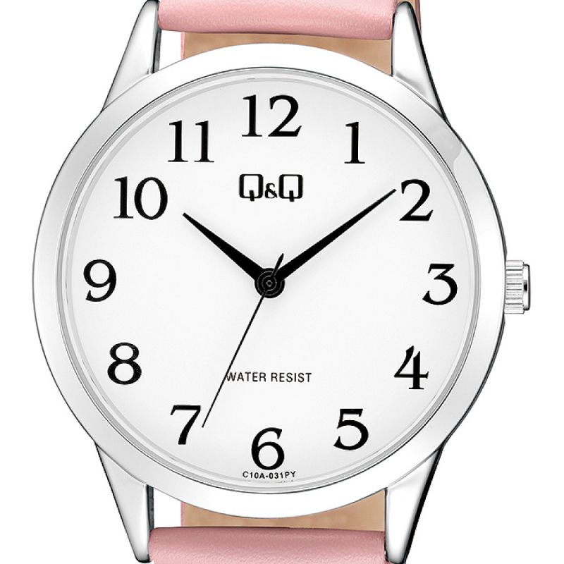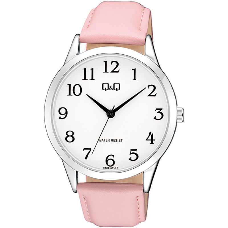 Дамски часовник Q&Q C10A-031PY с Кожена каишка/верижка и Кварцов механизъм