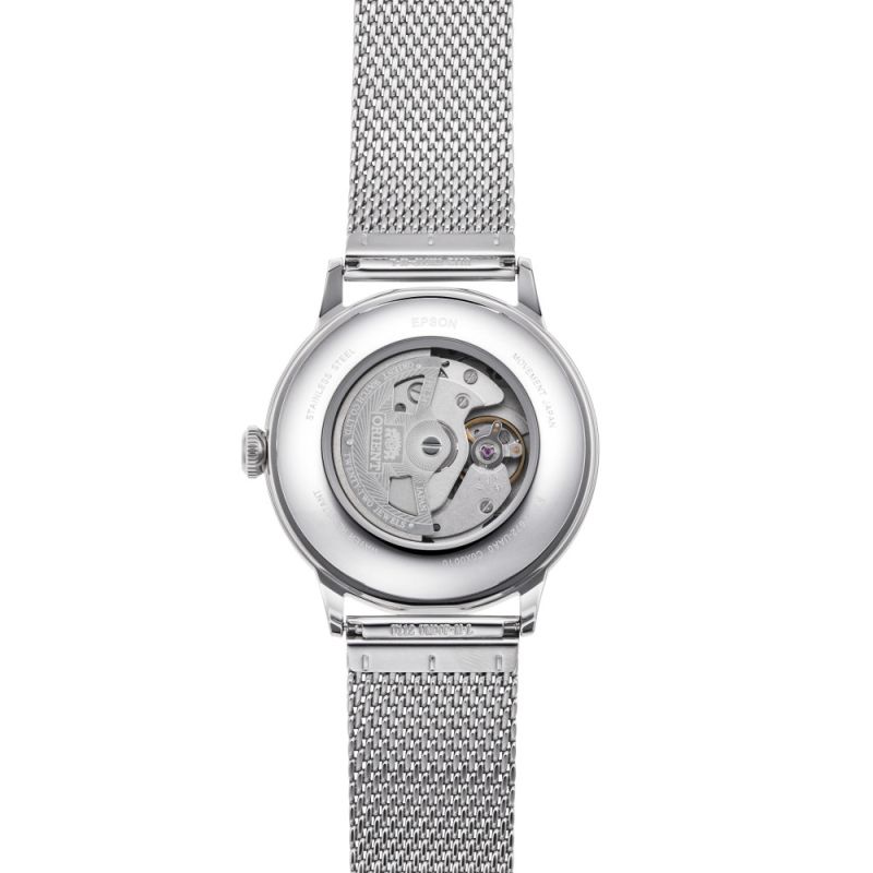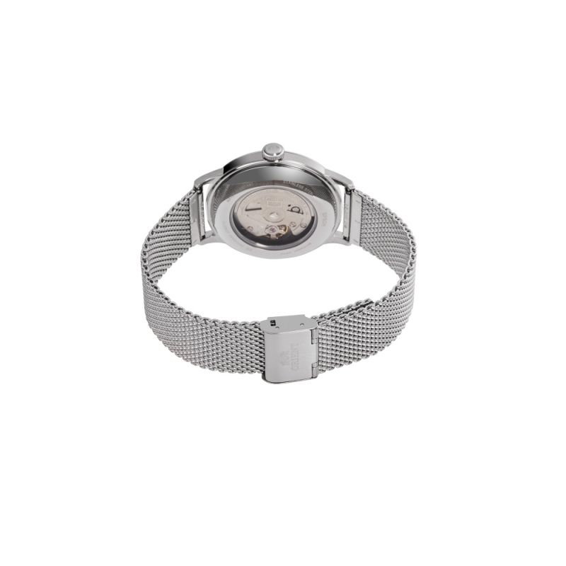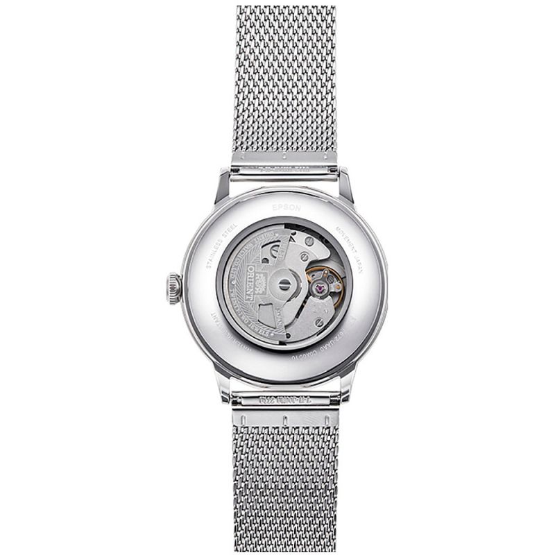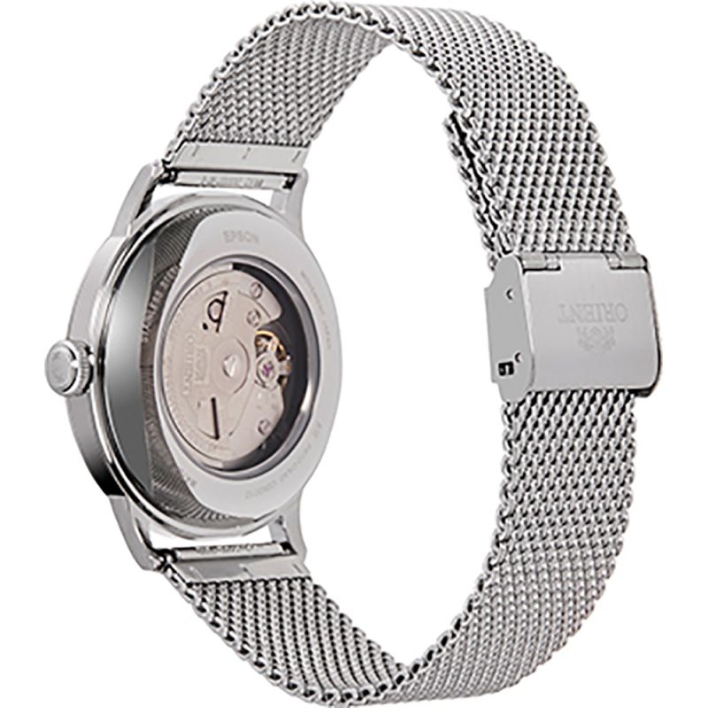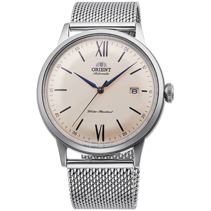 Класически модел мъжки часовник Orient с елегантен дизайн от колекция Classic. Корпус и верижка ситна плетка изработени от неръждаема стомана. Бежов аналогов дисплей с показател за дата. Минерално стъкло, устойчиво на надраскване. Автоматичен механизъм Cal.F6724,  който може да бъде наблюдаван през прозрачния гръб. Водоустойчивост 3 ATM - допускат се леки пръски, не се препоръчва обилно мокрене.