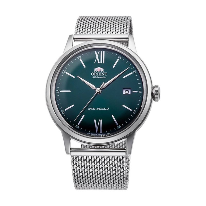 Класически модел мъжки часовник Orient с елегантен дизайн. Корпус и верижка ситна плетка изработени от неръждаема стомана. Тъмнозелен аналогов дисплей с показател за дата. Сребристи стрелки, индекси и римски цифри. Минерално стъкло, устойчиво на надраскване. Автоматичен механизъм Cal.F6724, който може да се наблюдава през прозрачния гръб. Водоустойчивост 3 ATM - допускат се леки пръски, не се препоръчва обилно мокрене.