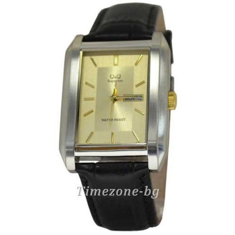Мъжки часовник Q&Q R178J300Y с кожена каишка/верижка и Кварцов механизъм