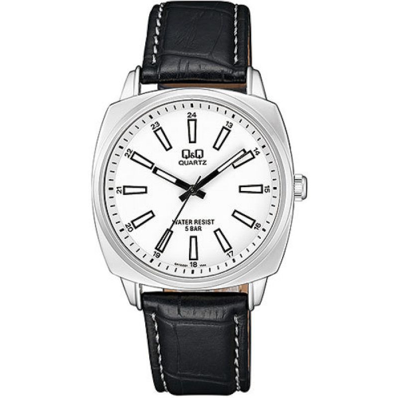 Мъжки часовник Q&Q QA12J301Y с кожена каишка/верижка и Кварцов механизъм