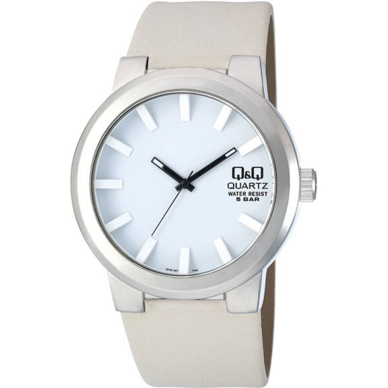 Мъжки часовник Q&Q Q740J301Y с кожена каишка/верижка и Кварцов механизъм