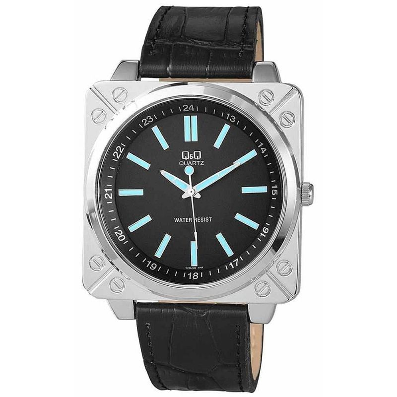 Мъжки часовник Q&Q Q232J302Y с кожена каишка/верижка и Кварцов механизъм