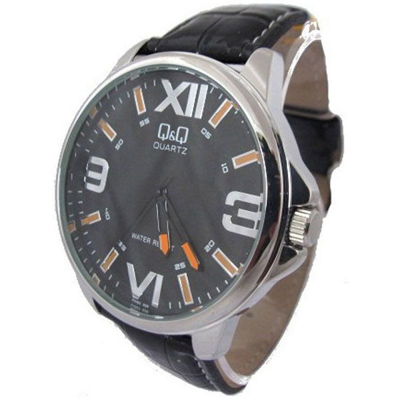 Мъжки часовник Q&Q KW82J826Y с кожена каишка/верижка и Кварцов механизъм