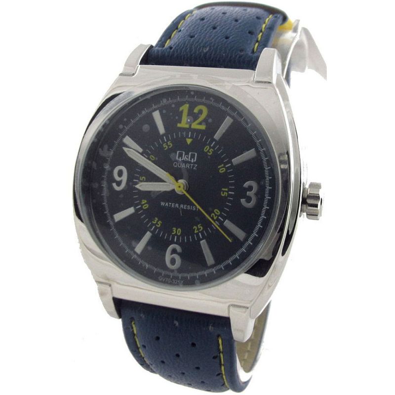 Мъжки часовник Q&Q GV70-325Y с кожена каишка/верижка и Кварцов механизъм