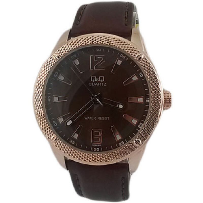 Мъжки часовник Q&Q GU34J809Y с кожена каишка/верижка и Кварцов механизъм