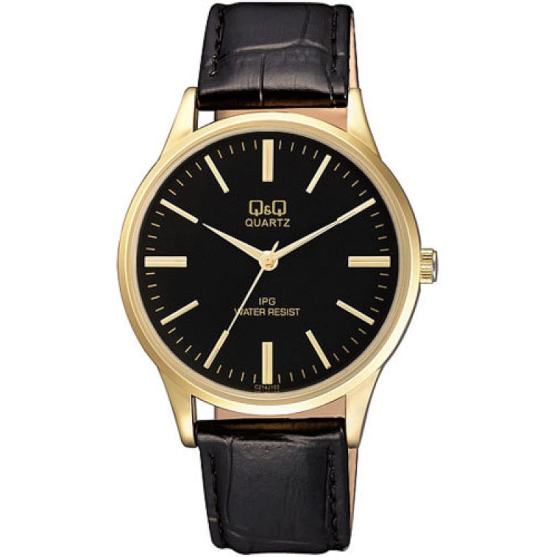 Мъжки часовник Q&Q C214J102Y с кожена каишка/верижка и Кварцов механизъм