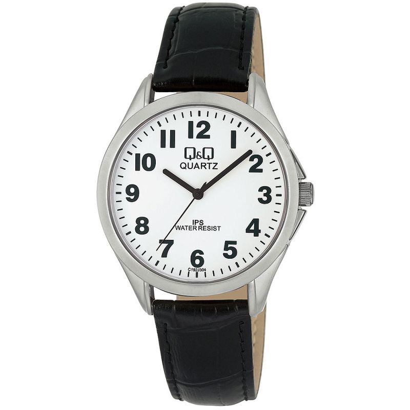 Мъжки часовник Q&Q C192J304Y с кожена каишка/верижка и Кварцов механизъм