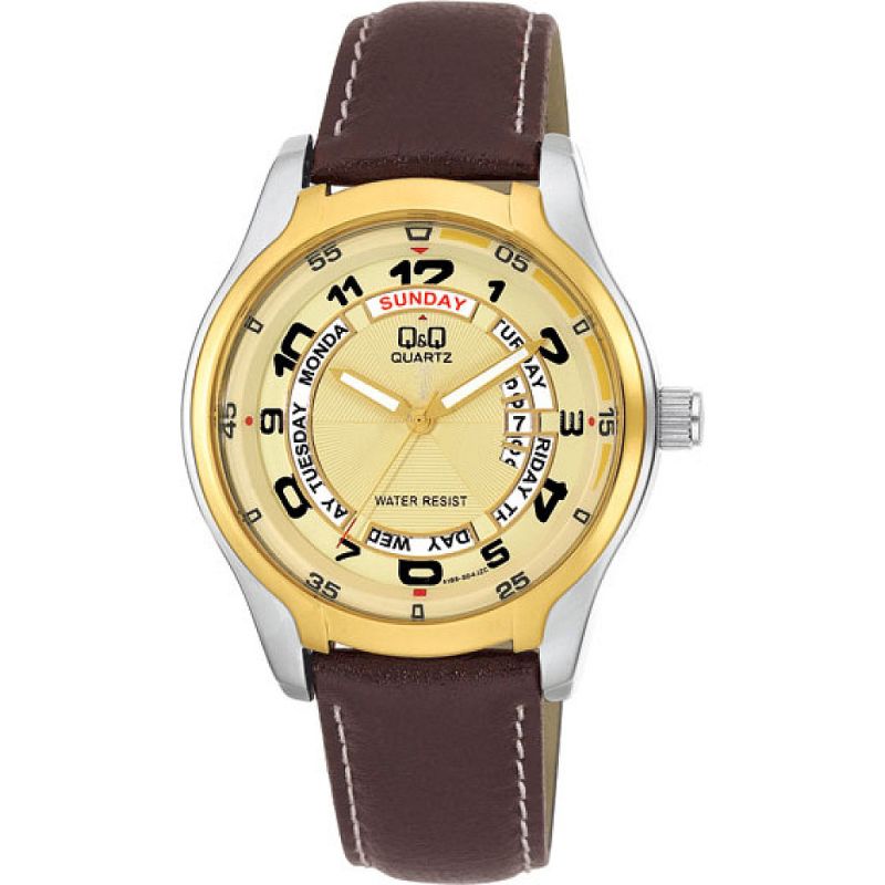 Мъжки часовник Q&Q A186J504Y с кожена каишка/верижка и Кварцов механизъм