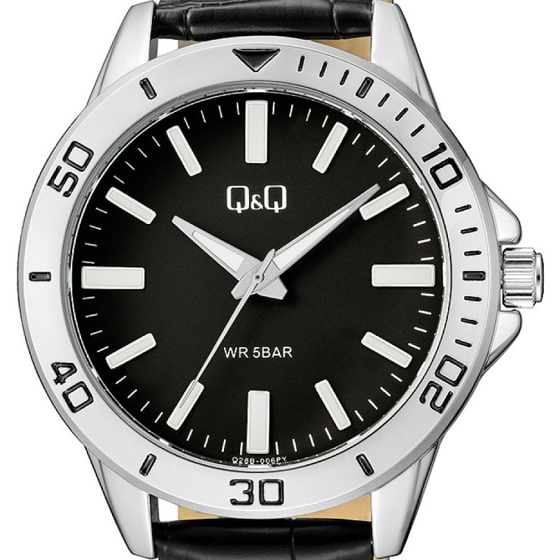 Мъжки часовник Q&Q Q28B-006PY с Кожена каишка/верижка и Кварцов механизъм