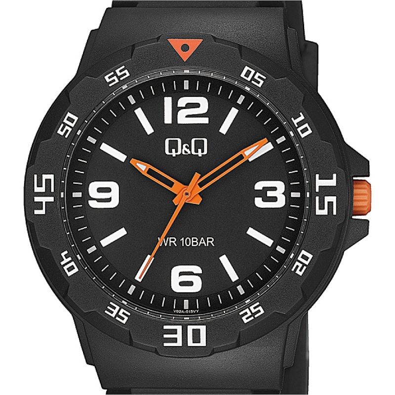 Мъжки часовник Q&Q V02A-015VY с Полимер каишка/верижка и Кварцов механизъм