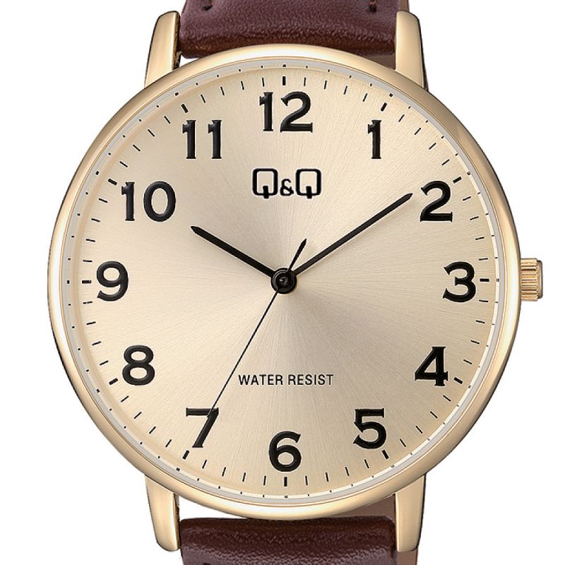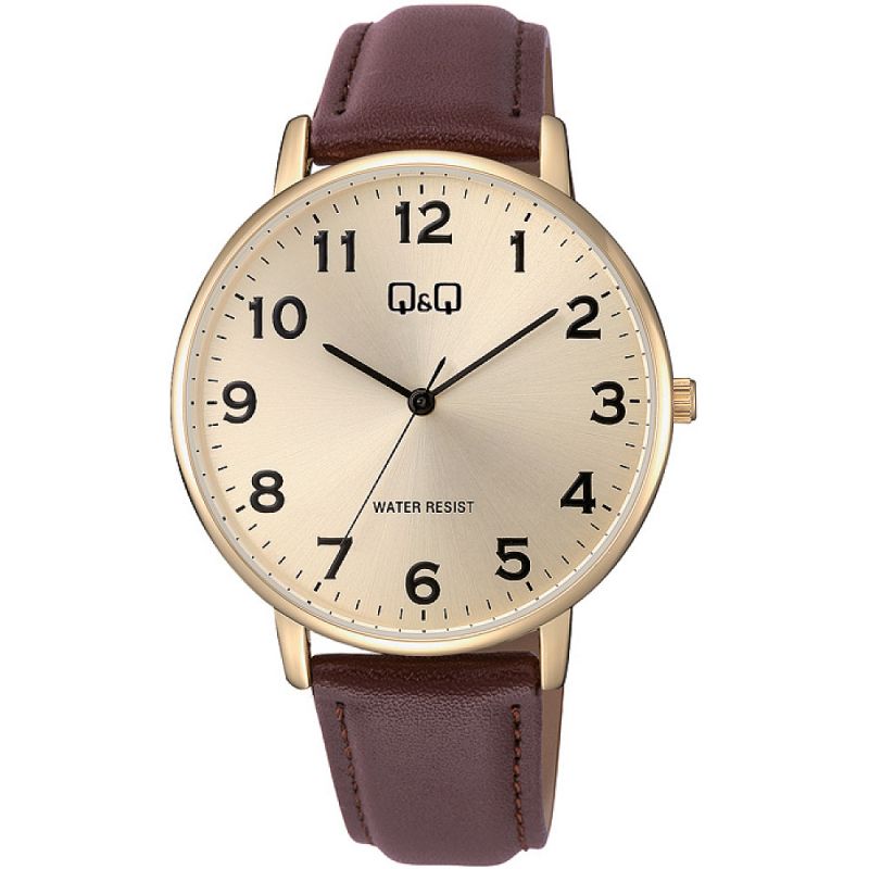 Мъжки часовник Q&Q C64A-004PY с Кожена каишка/верижка и Кварцов механизъм