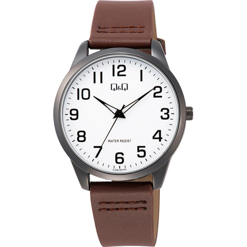Мъжки часовник Q&Q C32A-001PY с Кожена каишка/верижка и Кварцов механизъм
