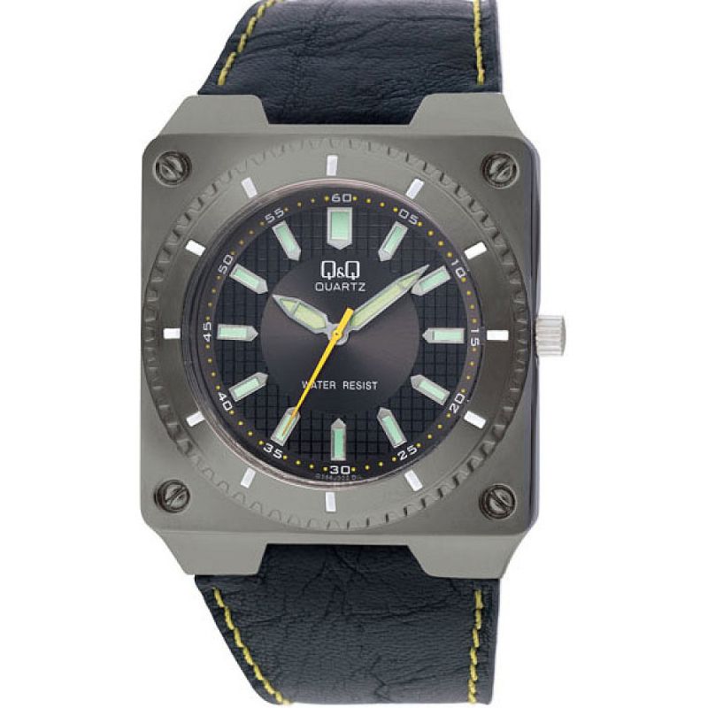 Мъжки часовник Q&Q Q366J502Y с кожена каишка/верижка и Кварцов механизъм