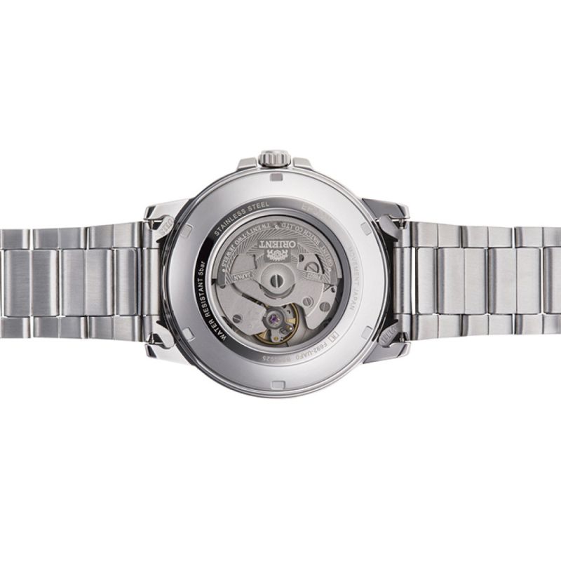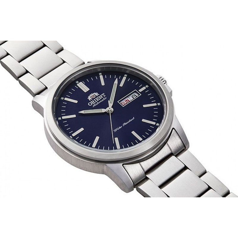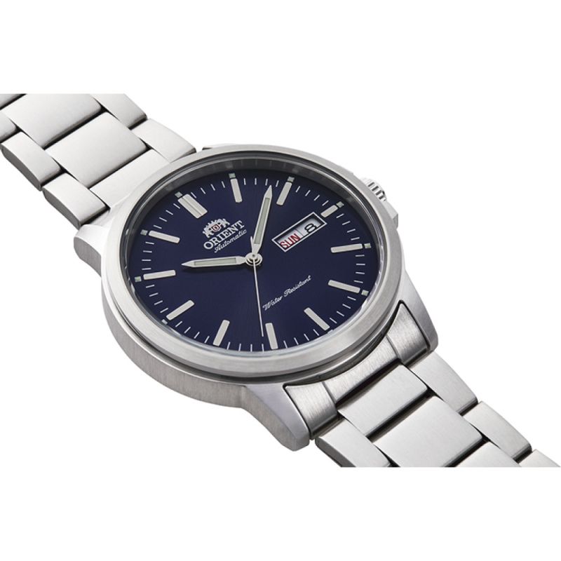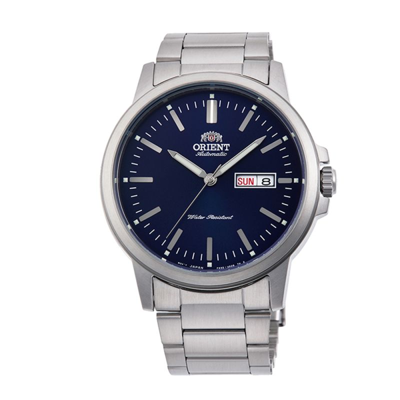 Класически модел мъжки часовник Orient от  колекцията Contemporary. Корпус и верижка от неръждаема стомана. Тъмносин аналогов дисплей с показател за дата и ден. Стъкло минерал-кристал. Автоматичен японски механизъм. Водоустойчивост 5 ATM - допускат се леки пръски и взимане на душ, не се препоръчва обилно мокрене.