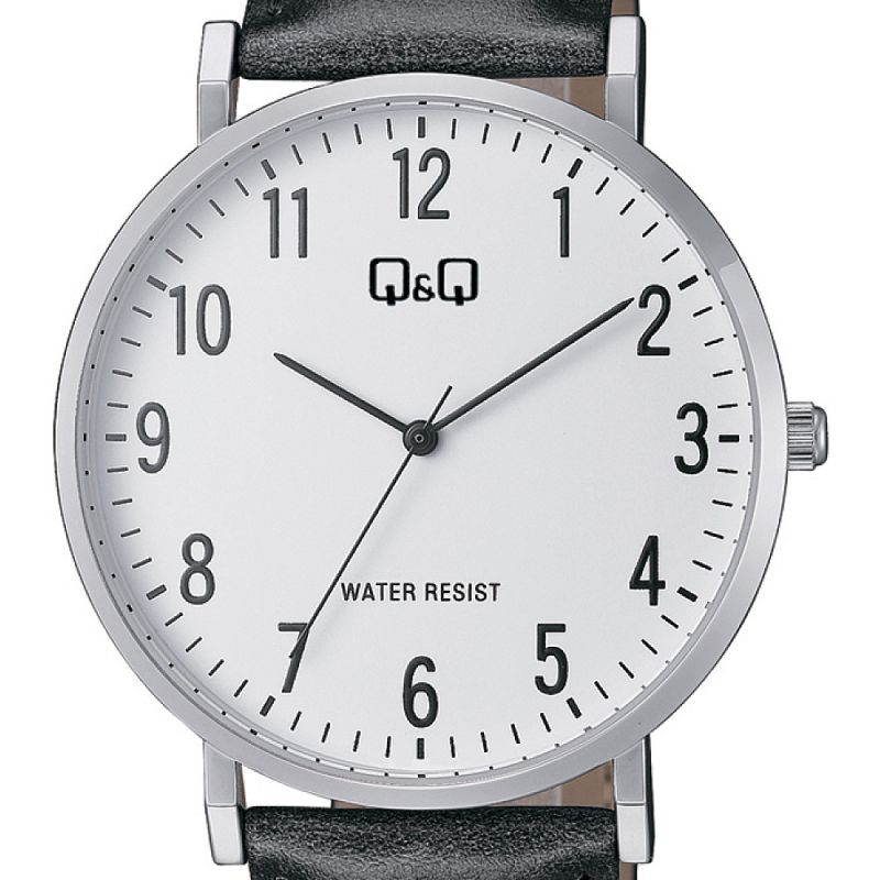 Мъжки часовник Q&Q C43A-001PY с Кожена каишка/верижка и Кварцов механизъм