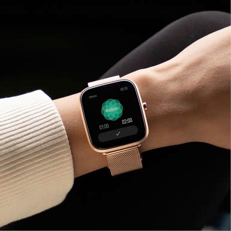 Този смарт часовник Sekonda Motion Plus има метален корпус с йонно покритие в розово злато и 1,83-инчов правоъгълен, напълно интерактивен сензорен екран. Характеристиките включват проследяване на стъпки/разстояние/калории, 15 спортни режима, измерване на сатурация, Bluetooth повиквания, задаване на чести контакти, приемане/отхвърляне/набиране на повиквания от вашия часовник и функция „винаги включен“ дисплей. Часовникът е със сменяема 20-милиметрова мрежеста верижка от неръждаема стомана с йонно покритие в розово злато с бързо освобождаващи се пружинни лостове и степен на водоустойчивост IP67. Това означава, че часовникът е водоустойчив, но не се препоръчва за плуване или водни спортове.