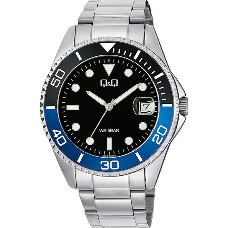 Мъжки часовник Q&Q A49A-002PY с Стомана каишка/верижка и Кварцов механизъм