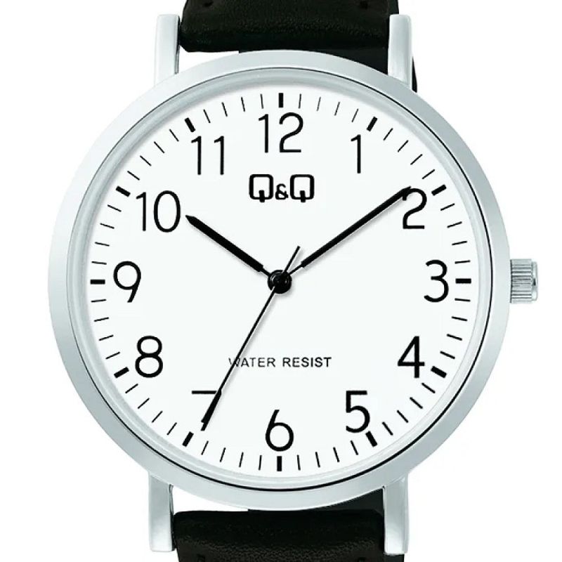 Мъжки часовник Q&Q C34A-007PY с Кожена каишка/верижка и Кварцов механизъм