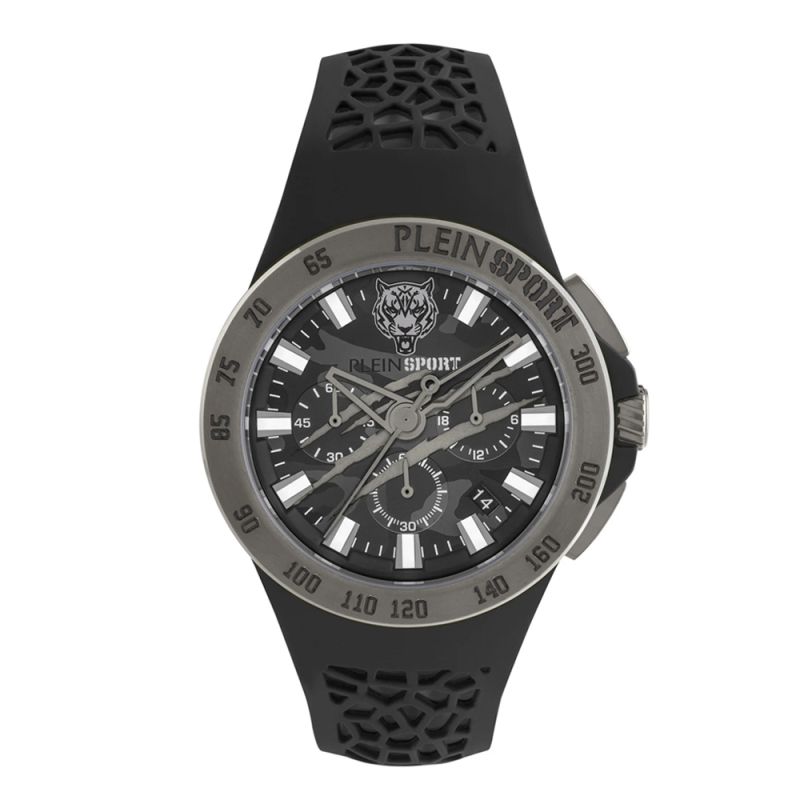 Мъжки часовник Philipp Plein с модерен спортно-ежедневен дизайн от колекцията Plein Sport. Дисплей тип хронограф с луминисцентно покритие на индексите. Минерално стъкло, устойчиво към надраскване. Корпус от неръждаема стомана, съчетан със силиконова каишка. Моделът се задвижва от кварцов механизъм. Водоустойчивост 5 ATM - допускат се леки пръски и взимане на душ, не се препоръчва обилно мокрене.