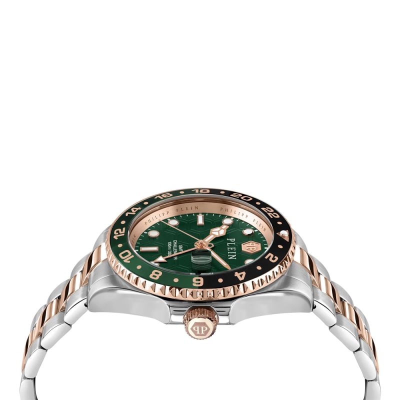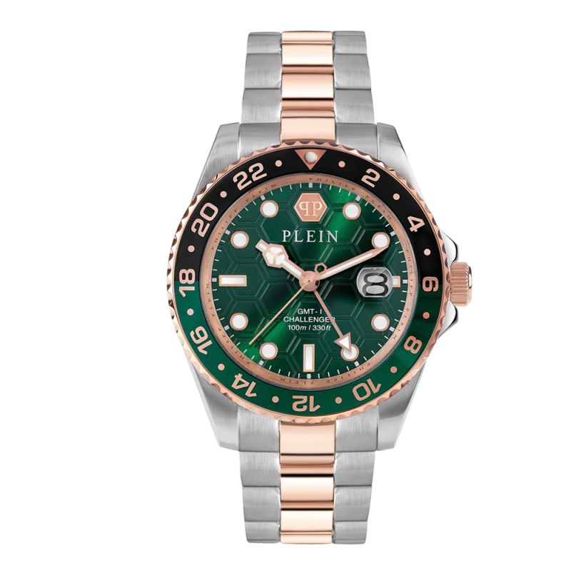 Мъжки часовник Philipp Plein със спортно-елегантен дизайн. Аналогов дисплей с показател за дата, луминисцентно покритие на стрелките и индексите. Минерално стъкло, устойчиво към надраскване. Корпус и верижка от неръждаема стомана. Кварцов механизъм. Водоустойчивост 10 ATM - позволява мокрене, къпане и плуване във водни басейни.