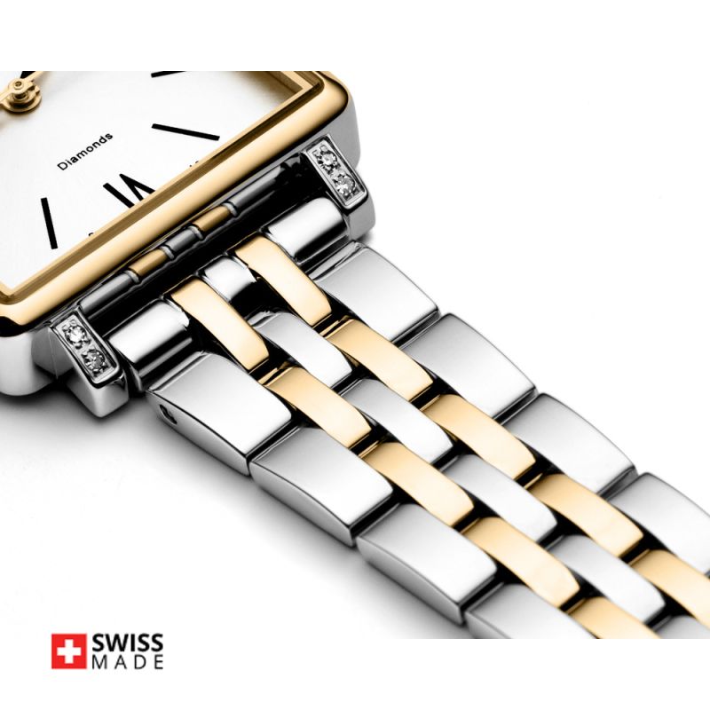Дамски часовник Appella L50023.2163DQ привлича вниманието със своята елегантност. Корпусът и верижката са изработени от неръждаема стомана. Корпусът е украсен с осем диаманта. Моделът е със сребрист циферблат и стъкло сапфир-кристал с антирефлетсно покритие. Задвижва се от кварцов механизъм ETA F04/ RONDA 785 Swiss Made. Водоустойчивост 3 ATM - допускат се леки пръски, не се препоръчва обилно мокрене.