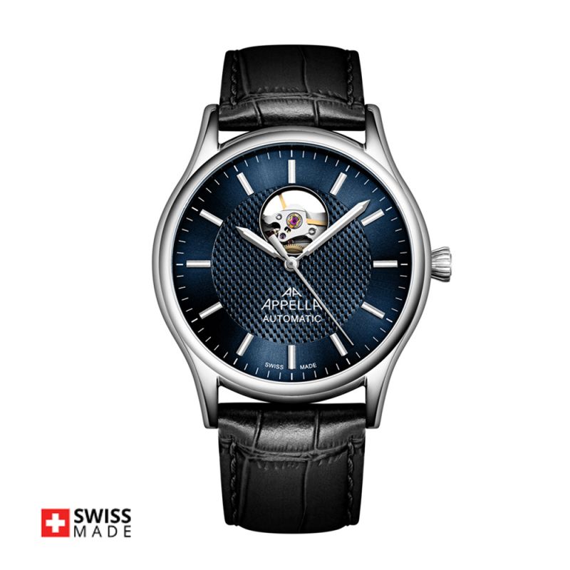 Мъжки часовник Appella L70013.5215OA е елегантен модел, който впечатлява с модерен дизайн и функционалност. Корпусът е изработен от неръждаема стомана и е с диаметър 42 мм и дебелина 10,5 мм. Каишката е от естествена кожа в черен цвят. Циферблатът е в тъмносин цвят с видим баланс. Стъклото е сапфир-кристал с антирефлексно покритие. Часовникът се задвижва от автоматичен механизъм SOPROD P024 Swiss Made. През прозрачния гръб на корпуса може да се наблюдава механизма на часовника. Водоустойчивост 5 ATM - допускат се леки пръски и взимане на душ, не се препоръчва обилно мокрене.