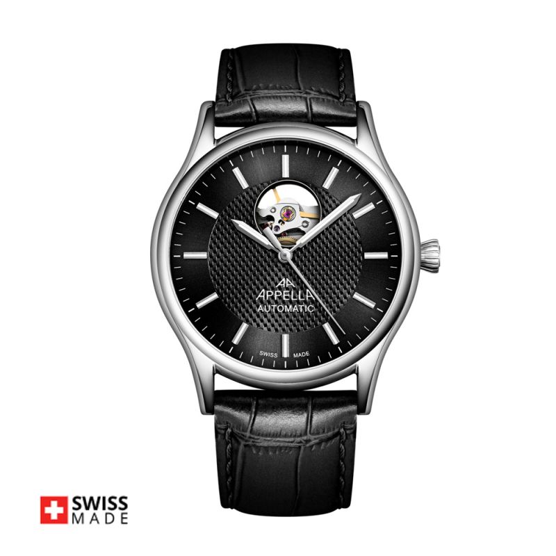 Мъжки часовник Appella L70013.5214OA е елегантен модел, който впечатлява с модерен дизайн и функционалност. Корпусът е изработен от неръждаема стомана и е с диаметър 42 мм и дебелина 10,5 мм. Каишката е от естествена кожа в черен цвят. Черен циферблат с видим баланс. Стъклото е сапфир-кристал с антирефлексно покритие. Часовникът се задвижва от автоматичен механизъм SOPROD P024 Swiss Made. През прозрачния гръб на корпуса може да се наблюдава механизма на часовника. Водоустойчивост 5 ATM - допускат се леки пръски и взимане на душ, не се препоръчва обилно мокрене.