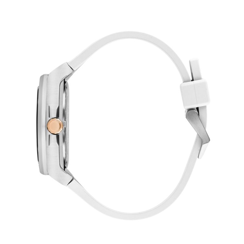 Дамски часовник Quantum с модерна спортна визия. Мултифункционален дисплей с показатели за дата, ден от седмицата и 24-часов формат. Стъкло минерал-кристал. Корпус от неръждаема стомана. Бяла силиконова каишка. Диаметър на корпуса 38 мм. Часовникът се задвижва от кварцов механизъм. Водоустойчивост 5 ATM - допускат се леки пръски и взимане на душ, не се препоръчва обилно мокрене.