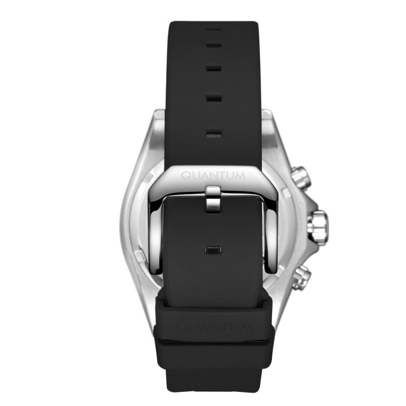 Страхотен модел мъжки часовник Quantum с дисплей хронограф. Луминесцентно покритие върху стрелките и индексите. Стъкло минерал-кристал. Корпус изработен от неръждаема стомана. Силиконова каишка в черен цвят. Диаметър на корпуса 44 мм. Часовникът се задвижва от кварцов механизъм с калибър VR32. Водоустойчивост 10 ATM - позволява мокрене, къпане и плуване във водни басейни.