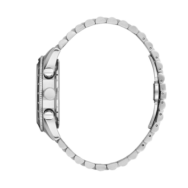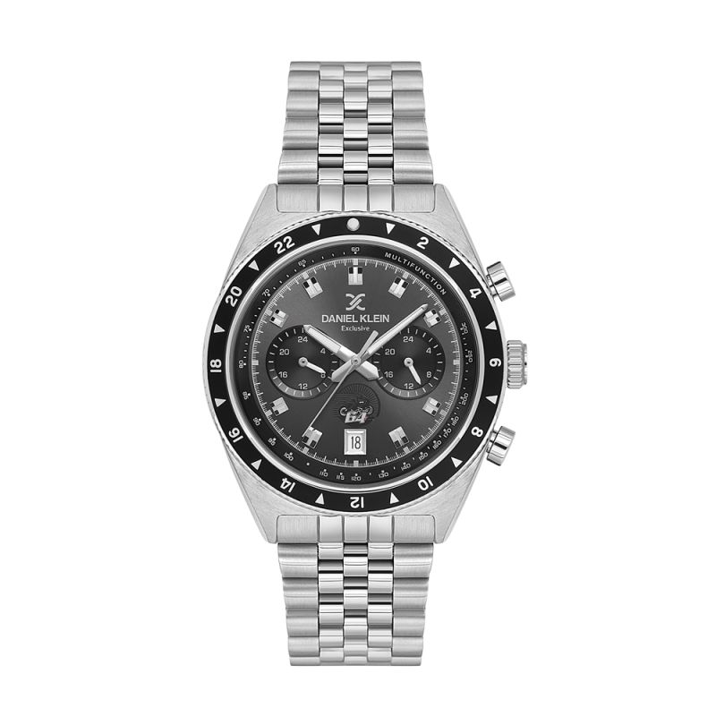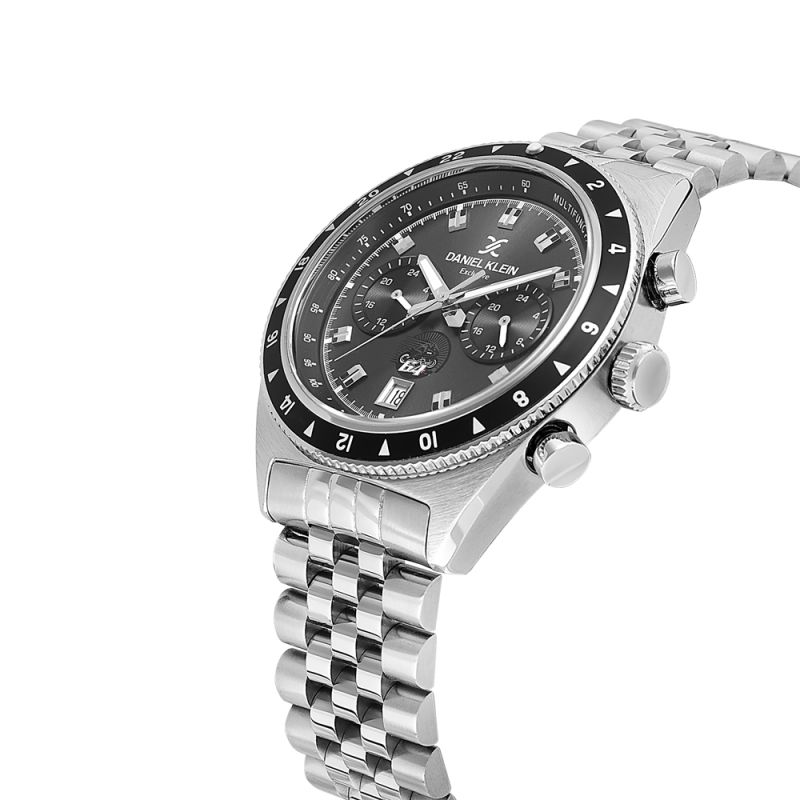 Спортно-елегантен мъжки часовник Daniel Klein от колекцията Exclusive. Мултифункционален дисплей с показатели за дата и двойно време. Метален корпус в комбинация с верижка от неръждаема стомана.  Стъкло минерал-кристал. Диаметър на корпуса 43 мм. Часовникът се задвижва от кварцов механизъм VD31B12. Водоустойчивост 5 ATM - допускат се леки пръски и взимане на душ, не се препоръчва обилно мокрене.