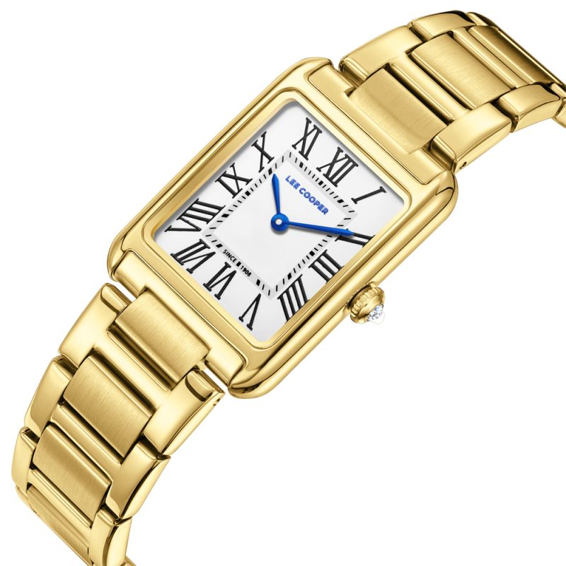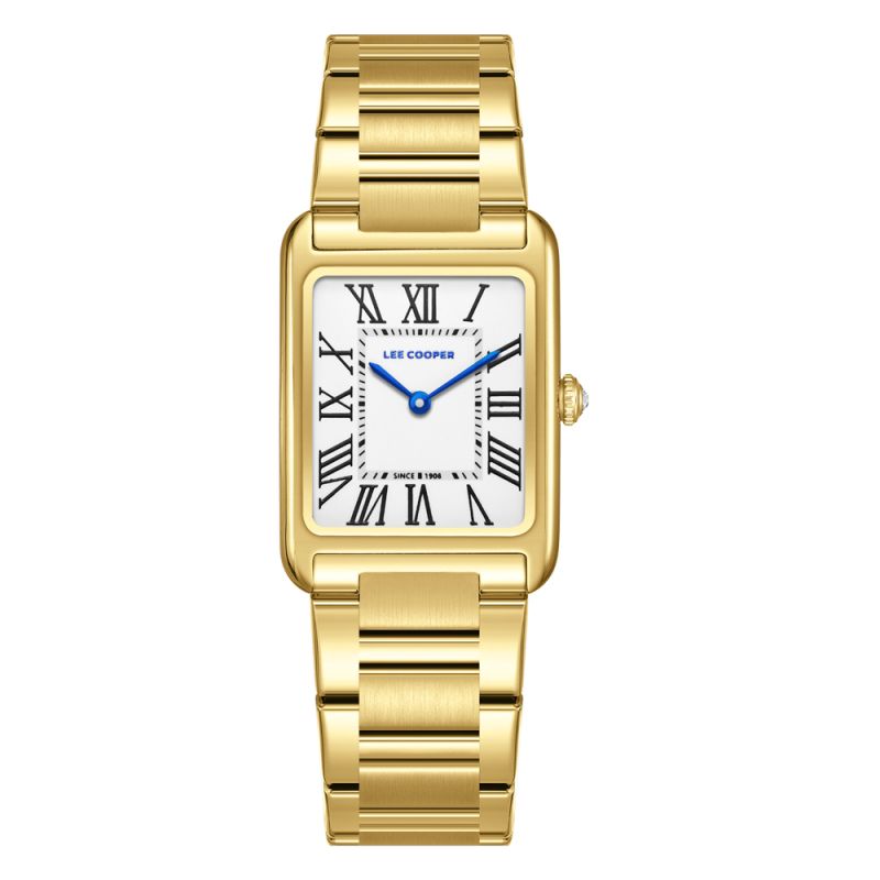 Дамски часовник Lee Cooper с класически дизайн от колекцията Elegance. Сив аналогв дисплей със сини стрелки  и черни римски цифри. Стъкло минерал-кристал. Корпус изработен от супер метал - специална сплав, създадена от марката. Верижка от неръждаема стомана. Задвижва се от кварцов механизъм. Водоустойчивост 3 ATM - допускат се леки пръски, не се препоръчва обилно мокрене.