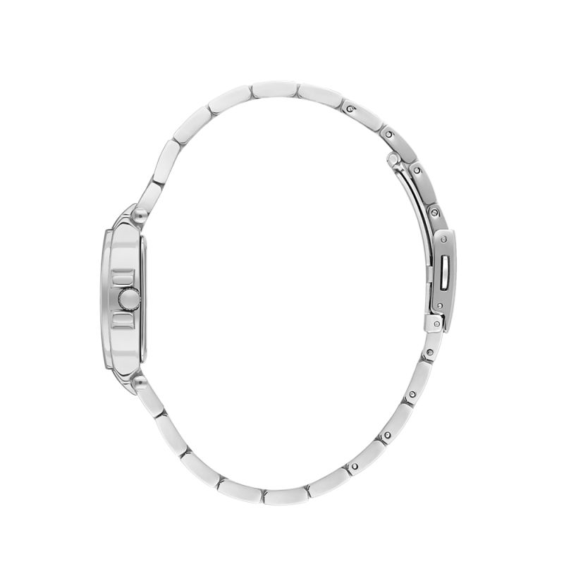 Изящен дамски часовник Daniel Klein със стилна визия от колекцията Premium. Аналогов дисплей в сребрист цвят със семпъл дизайн. Декорация от нежни кристали по индексите, безела и част от верижката. Стъкло минерал-кристал. Корпус изработен от метал. Верижка от неръждаема стомана. Часовникът се задвижва от кварцов механизъм. Водоустойчивост 3 ATM - допускат се леки пръски, не се препоръчва обилно мокрене.