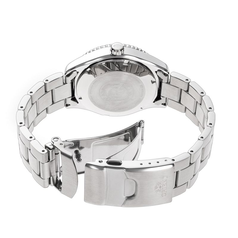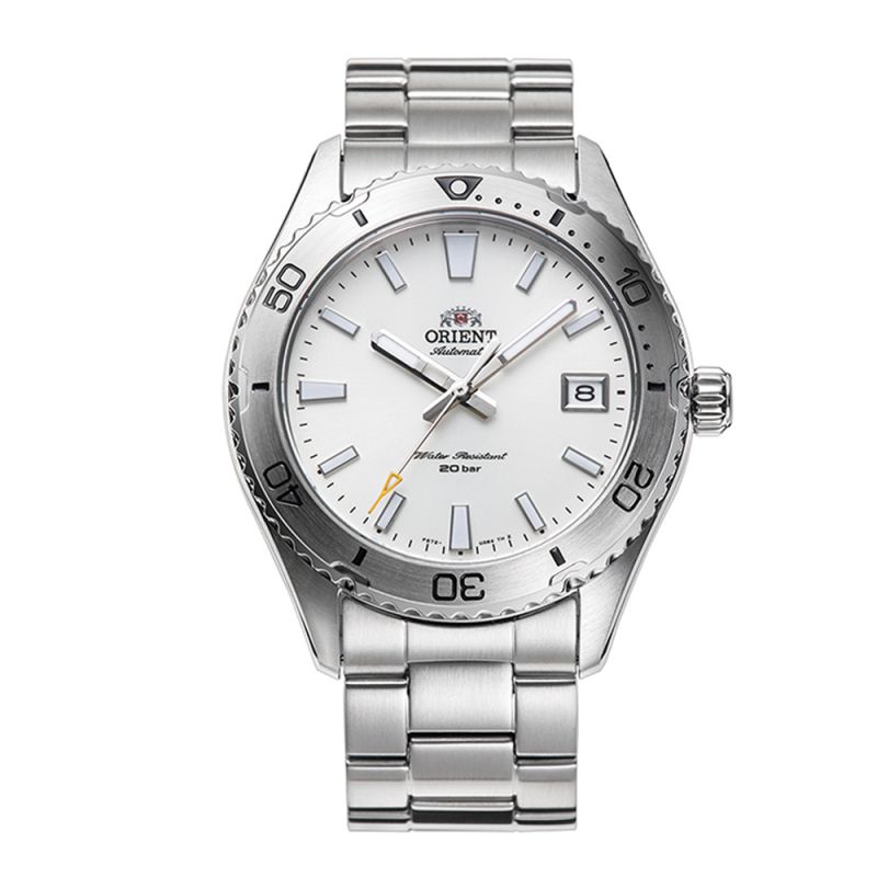 Часовник Orient със спортно-ежедневна визия. Моделът е с компактен корпус от 39,9 мм, идеален както за мъже, така и за жени. Корпусът и верижката са изработени  от неръждаема стомана. Дисплеят е аналогов в бял цвят с изчистен дизайн и показател за дата. Стрелките и индексите са с луминесцентно покритие. Стъклото е сапфир-кристал. Часовникът е с автоматичен механизъм Cal.F6722 с 40 часа резервна мощност и има завинтена коронка. Водоустойчивост 20 ATM - позволява мокрене, къпане, плуване и гмуркане във водни басейни.