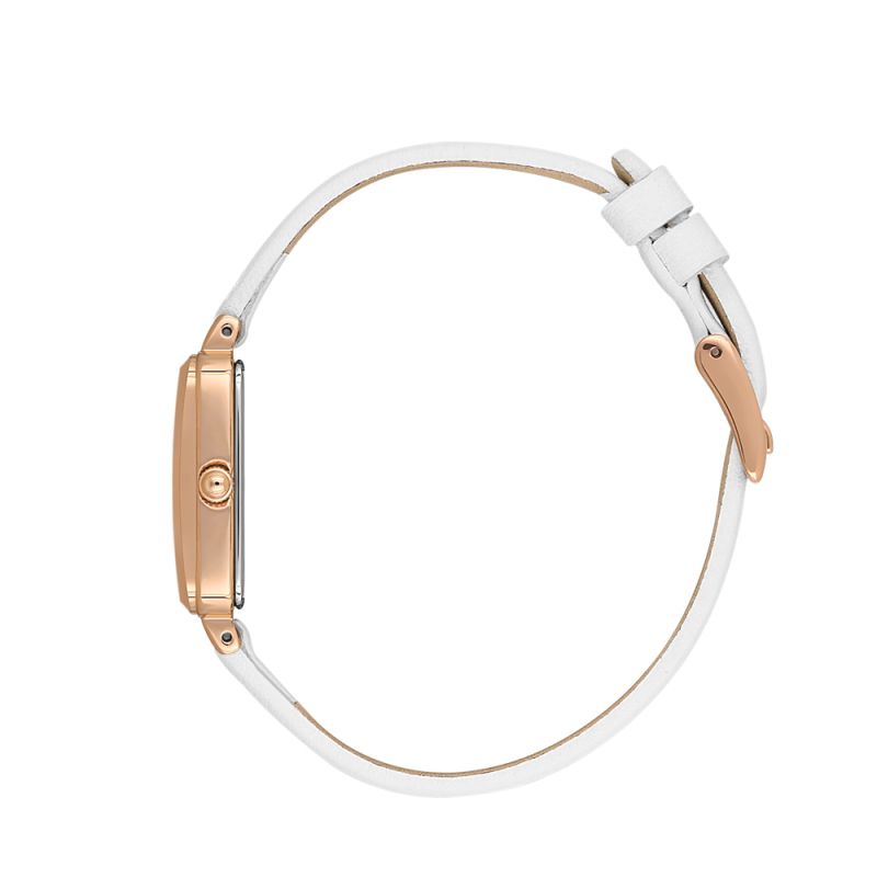 Дамски часовник Daniel Klein със стилна визия от колекцията Premium. Сребрист аналгов дисплей със стрелки и индекси в цвят розово злато. Корпус изработен от метал. Бяла каишка от естествена кожа. Задвижва се от кварцов механизъм. Водоустойчивост 3 ATM - допускат се леки пръски, не се препоръчва обилно мокрене.