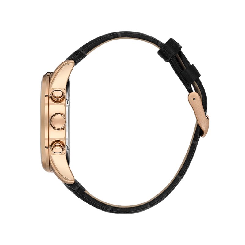 Спортно-елегантен мъжки часовник Daniel Klein от колекцията Exclusive. Черен мултифункционален дисплей с детайли в цвят розово злато. Диаметър на корпуса 42 мм. Метален корпус съчетан с каишка от естествена кожа. Часовникът се задвижва от кварцов механизъм. Водоустойчивост 5 ATM - допускат се леки пръски и взимане на душ, не се препоръчва обилно мокрене.