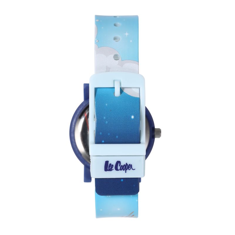 Детски часовник Lee Cooper с цветен дизайн на тема космос. Моделът е с аналогов дисплей и минерално стъкло. Корпус от поликарбонат, съчетан със силиконова каишка. Задвижва се от кварцов механизъм. Водоустойчивост 3 ATM - допускат се леки пръски, не се препоръчва обилно мокрене.