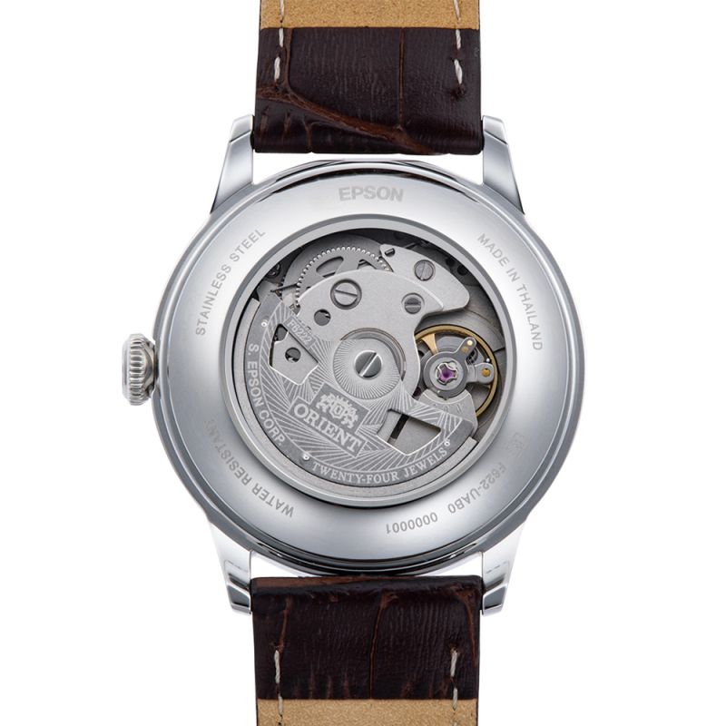 Класически модел мъжки часовник Orient със семпъл дизайн. Корпус от неръждаема стомана, съчетан с каишка от естествена кожа. Бежов аналогов дисплей с показател за дата и отделен секундарник. Стъкло минерал-кристал. Автоматичен механизъм Orient Calibre F6222 с 40 часа резервна мощност. Водоустойчивост 3 ATM - допускат се леки пръски, не се препоръчва обилно мокрене.
