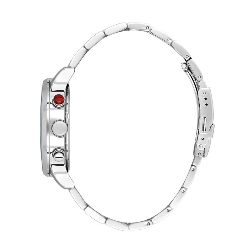 Спортно-елегантен мъжки часовник Daniel Klein с дисплей хронограф. Стъкло минерал-кристал. Метален корпус в комбинация с верижка от неръждаема стомана. Задвижва се от кварцов механизъм. Водоустойчивост 5 ATM - допускат се леки пръски и взимане на душ, не се препоръчва обилно мокрене.