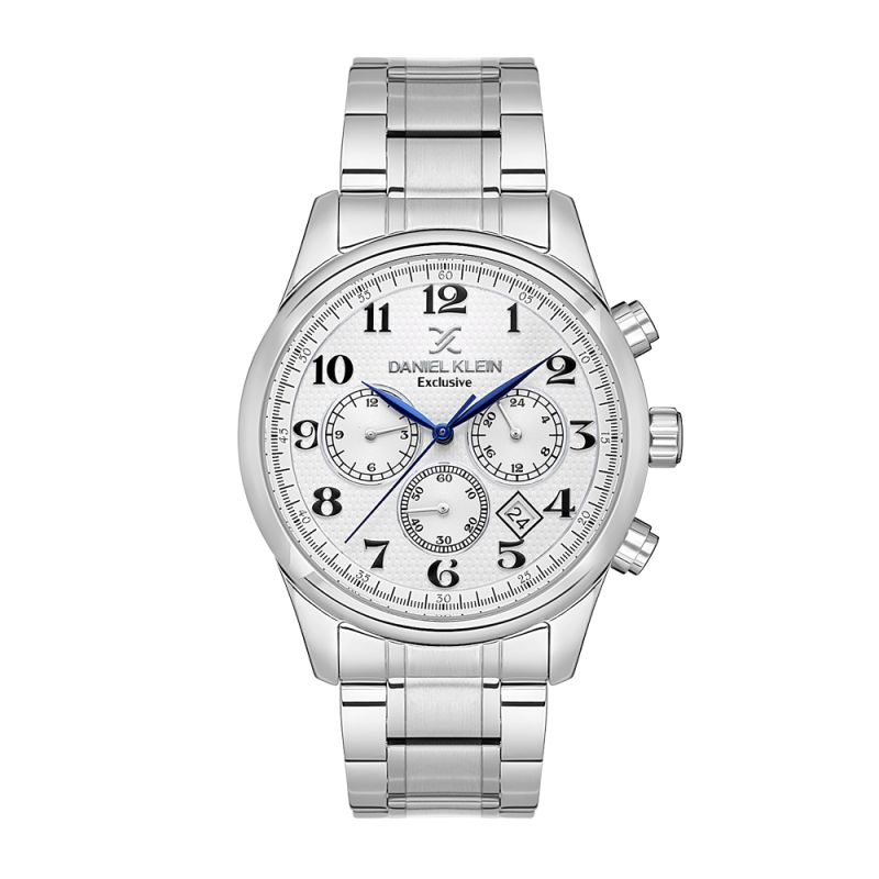 Класически модел мъжки часовник Daniel Klein с дисплей хронограф от колекцията Exclusive. Стъкло минерал-кристал. Метален корпус в комбинация с верижка от неръждаема стомана. Кварцов механизъм. Водоустойчивост 5 ATM - допускат се леки пръски и взимане на душ, не се препоръчва обилно мокрене.