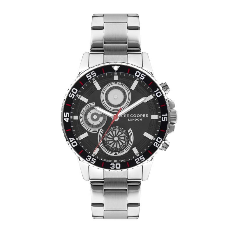 Спортно-елегантен мъжки часовник Lee Cooper с корпус от супер метал. Моделът е с мултифункционален дисплей  и минерално стъкло. Метална верижка. Задвижва се от кварцов механизъм. Водоустойчивост 5 ATM - допускат се леки пръски и взимане на душ, не се препоръчва обилно мокрене.