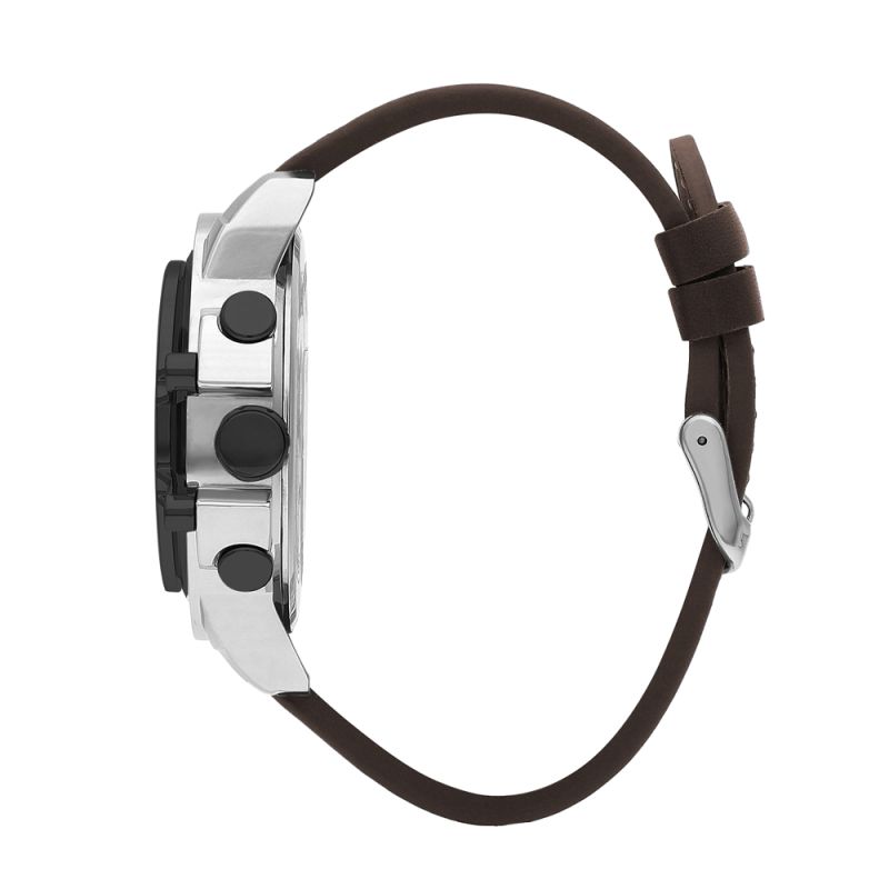 Спортно-елегантен мъжки часовник Lee Cooper с дисплей тип хронограф. Корпус изработен от супер метал. Тъмнокафява каишка от естествена кожа. Стъкло минерал-кристал. Задвижва се от кварцов механизъм. Водоустойчивост 5 ATM - допускат се леки пръски и взимане на душ, не се препоръчва обилно мокрене.