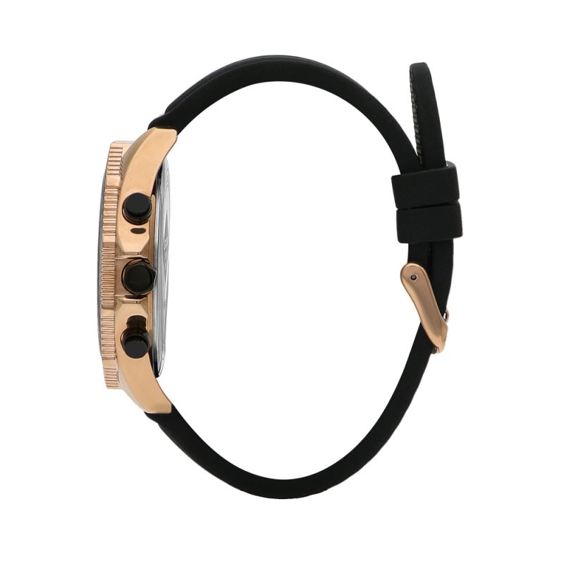 Стилен мъжки часовник Lee Cooper с мултифункционален дисплей. Стъкло минерал-кристал. Корпус изработен от супер метал. Черна силиконова каишка с декоративен шев. Кварцов механизъм. Водоустойчивост 5 ATM - допускат се леки пръски и взимане на душ, не се препоръчва обилно мокрене.