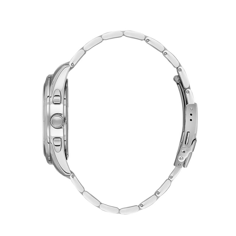 Спортно-елегантен мъжки часовник с мултифункционален дисплей. Метален корпус съчетан с верижка от неръждаема стомана. Стъкло минерал-кристал. Часовникът се задвижва от кварцов механизъм. Водоустойчивост 5 ATM - допускат се леки пръски и взимане на душ, не се препоръчва обилно мокрене.