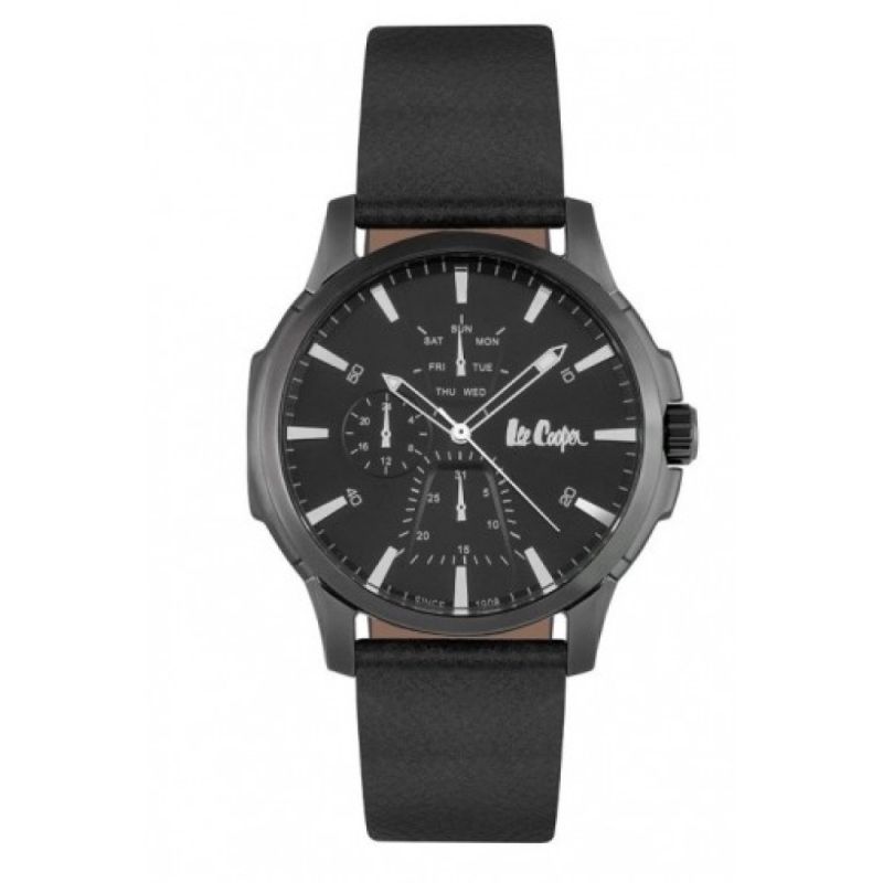 Мъжки часовник Lee Cooper от колекцията Classic Multifunction. Корпус от супер метал. Каишка от естествена кожа. Стъкло минерал-кристал. Мултифункционален черен дисплей. Кварцов механизъм. Водоустойчивост 3 ATM - допускат се леки пръски, не се препоръчва обилно мокрене.