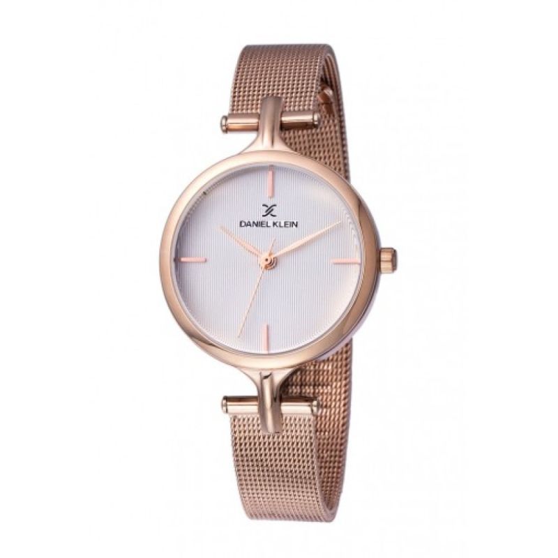 Дамски часовник Daniel Klein от колекцията Premium с елегантна визия. Моделът е с корпус от метал и верижка ситна плетка от неръждаема стомана. Аналогов дисплей с минерално стъкло. Кварцов механизъм. Водоустойчивост 3 ATM - допускат се леки пръски, не се препоръчва обилно мокрене.